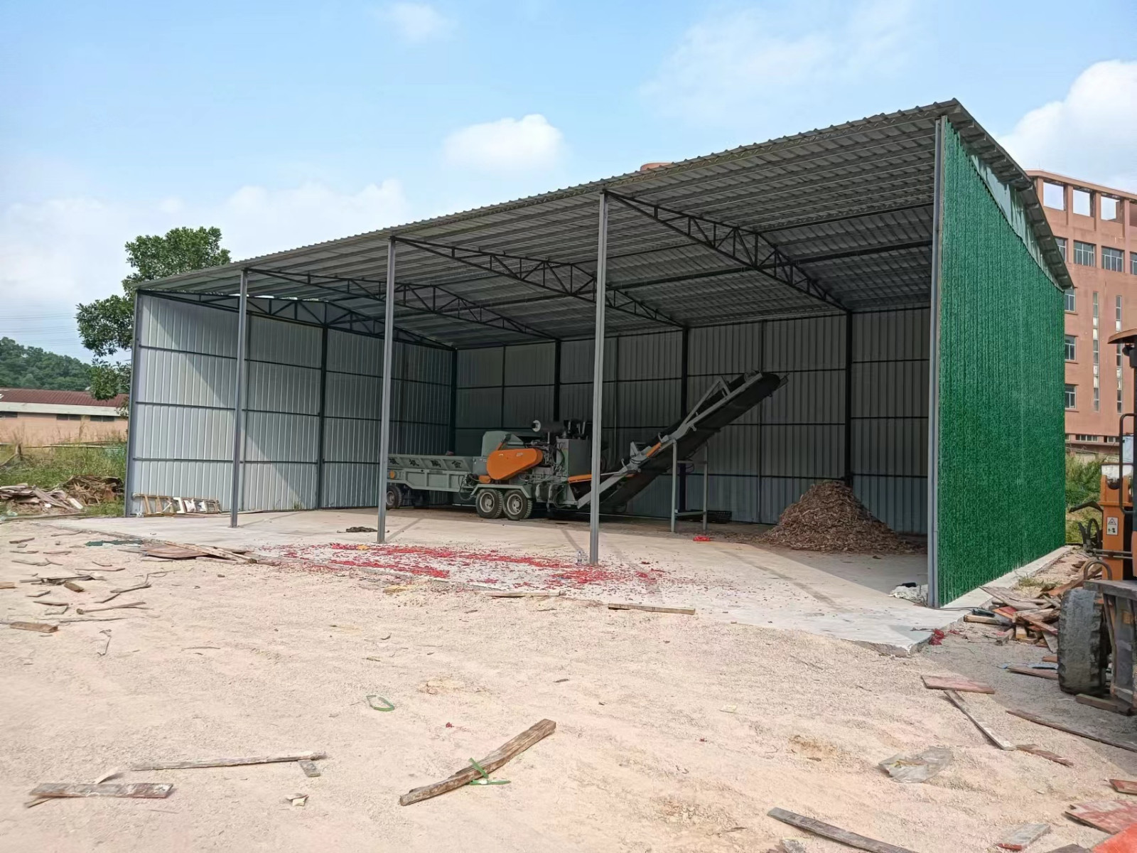 Mobility is key. The diesel-powered, wheel-mounted configuration allows the machine to be quickly moved by a semi-truck between different waste piles within the large yard or even to satellite locations, processing material where it lies without needing permanent infrastructure.